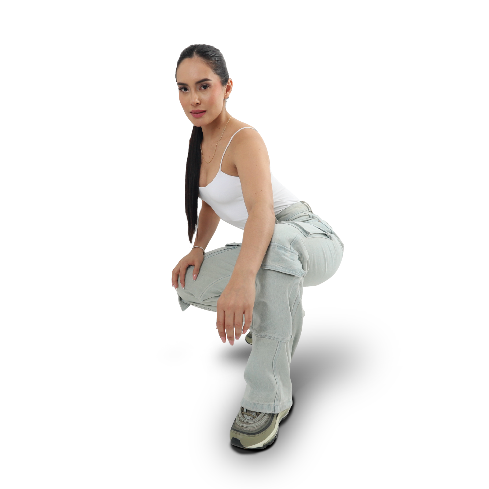 Jeans cargo slim corte media cintura para mujer